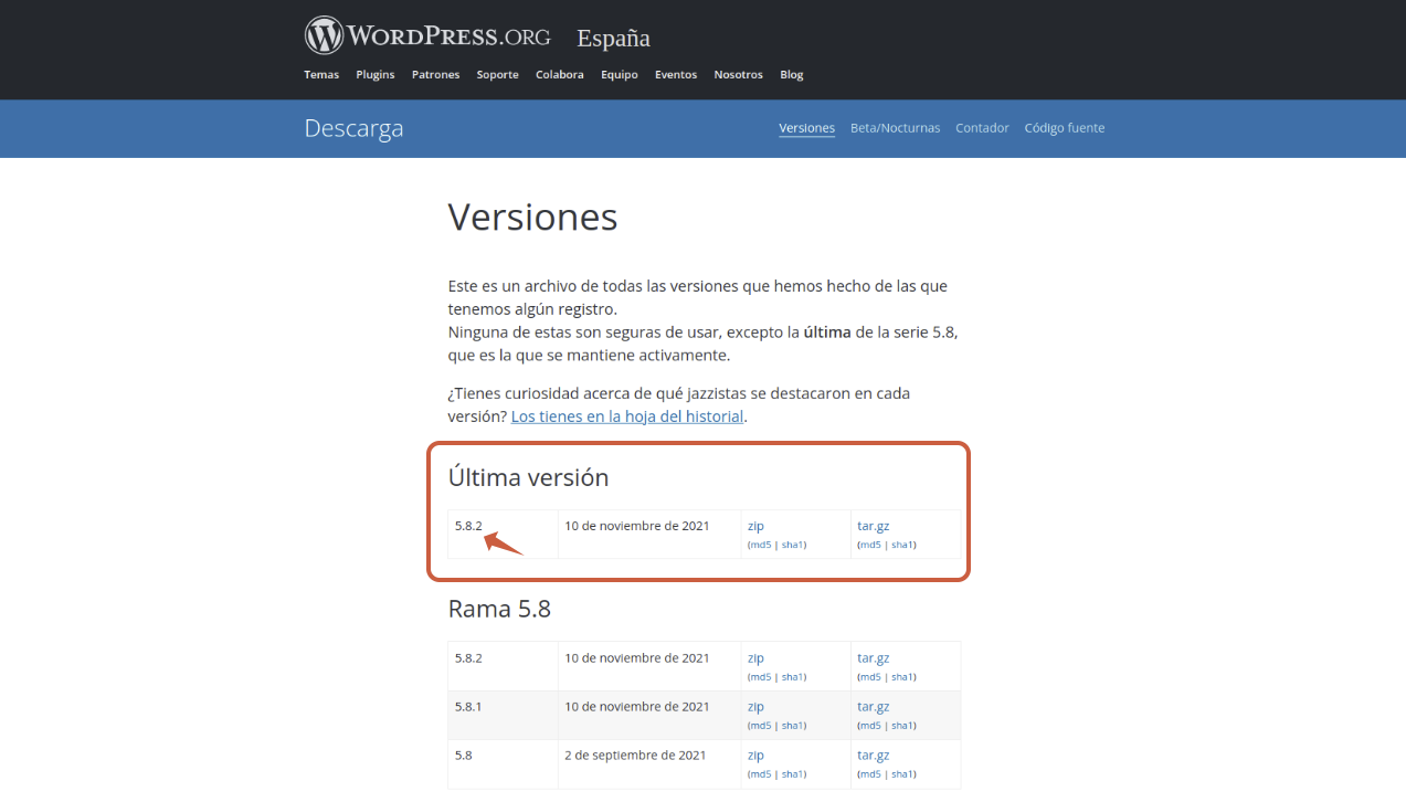 Esta información es indicada por el equipo de desarrollo de WordPress mediante las notas de parche de las nuevas versiones.