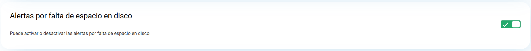 Una vez dentro, encontrarás la opción 'Alertas por falta de espacio en disco'.