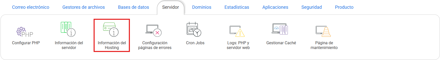 Servidor' pulsar en la opción Información del alojamiento.