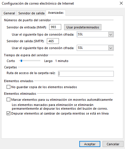 Servidor de Entrada IMAP: 993 (POP3: 995)