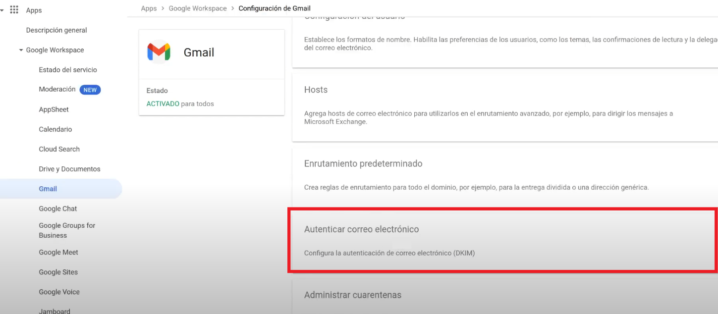 En primer lugar, necesitarás generar las claves DKIM desde la Consola de Administrador de Google. Aquí es donde Google Workspace te proporcionará el valor DKIM necesario.