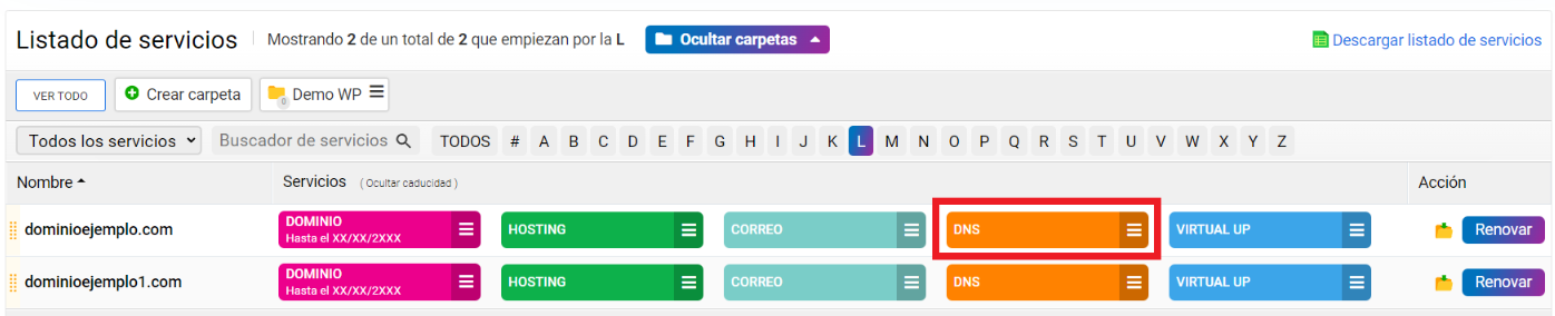 Para comenzar, inicia sesión en tu cuenta de cdmon, en nuestro panel de control. Una vez dentro, busca la sección donde puedes gestionar los registros DNS.