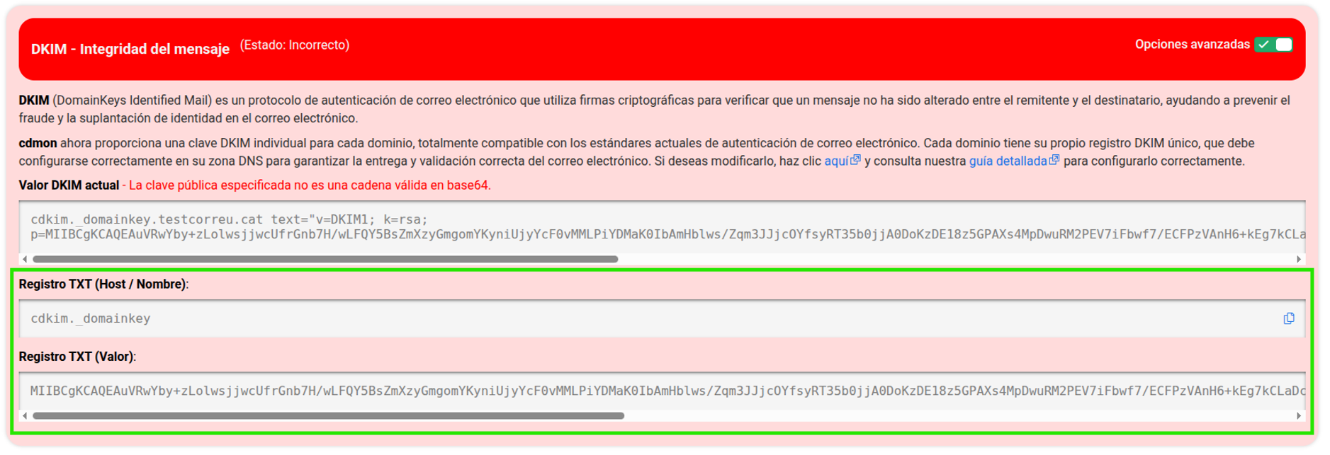 - El dominio seguirá utilizando el DKIM compartido (srv.cat)