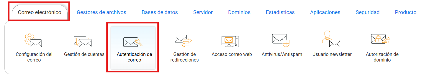 Gestión del alojamiento → Autenticación del correo → DKIM