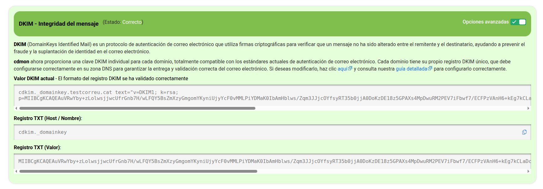- El DKIM individual se activará sin necesidad de acciones adicionales