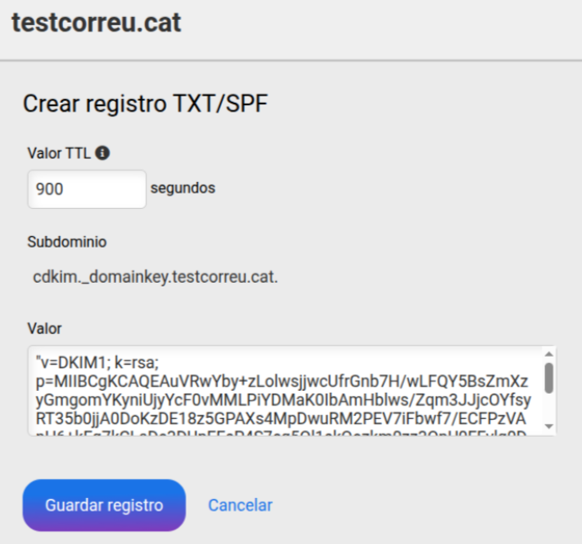 Será necesario añadir un registro DNS para activar el DKIM individual