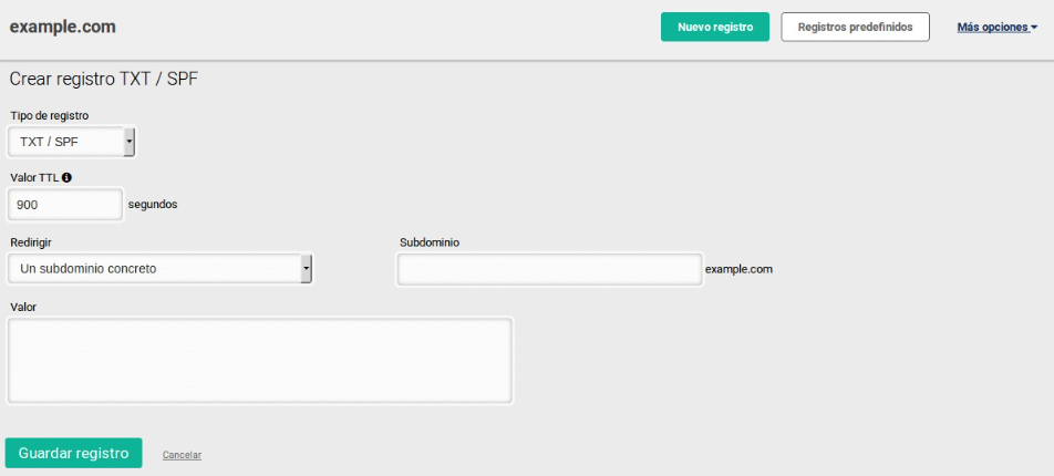 Este protocolo se configura mediante el registro TXT (DNS) y como norma general tiene el siguiente aspecto: