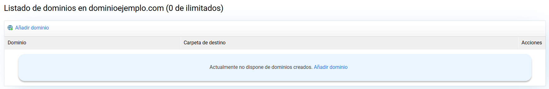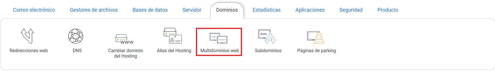 El servicio de multidominios web del Panel de control te permite alojar otros dominios en subcarpetas del alojamiento web. Esta herramienta sirve para alojar proyectos que no necesiten muchos recursos ni correo electrónico.