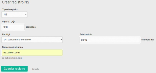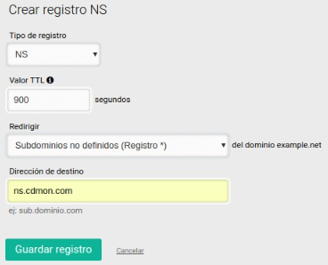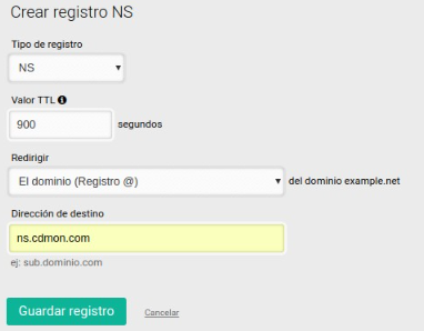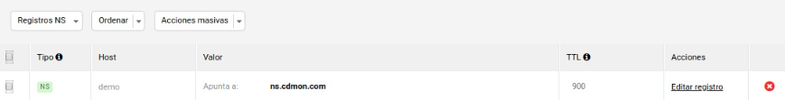 Un Registro NS (Name Server) determina los servidores que comunicarán la información del DNS de un dominio. Por ejemplo, nos permite asignar unos servidores DNS específicos para un subdominio.