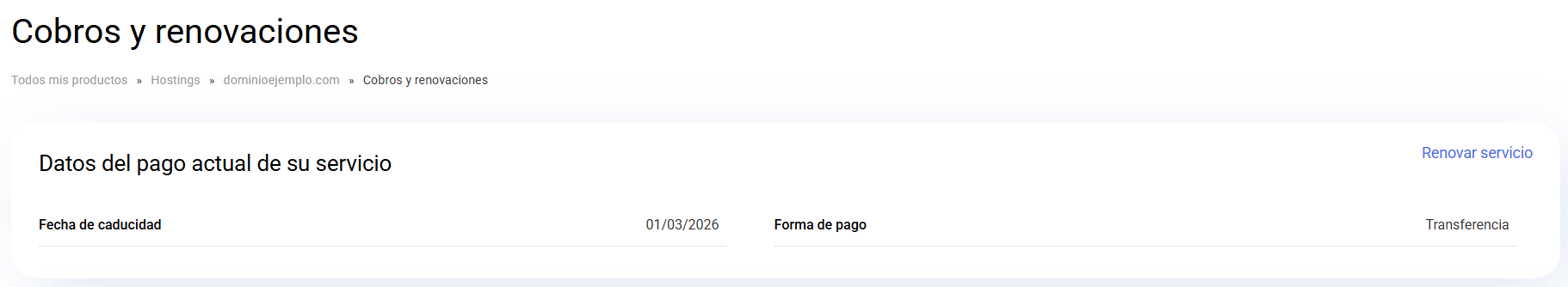 Renovar servicio: pulsando el enlace, accedes directamente a la pantalla de renovación del alojamiento.