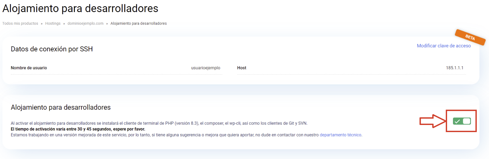 Anteriormente, la activación de Composer requería la intervención de nuestro equipo de soporte. Ahora, este proceso se ha simplificado y puedes activarlo directamente desde el panel de control. Sigue estos pasos: