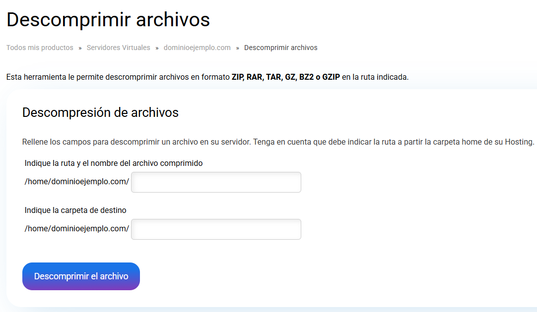 Descomprimir el archivo comprimido: