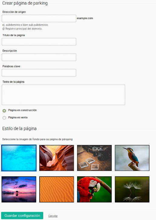 Importante: Si en la opción "Dirección de origen" escoges la opción "@" para redirigir el dominio principal, deberás crear un duplicado de la página de parking para redirigir el subdominio WWW o crear un registro CNAME con el subdominio WWW apuntando al dominio principal.