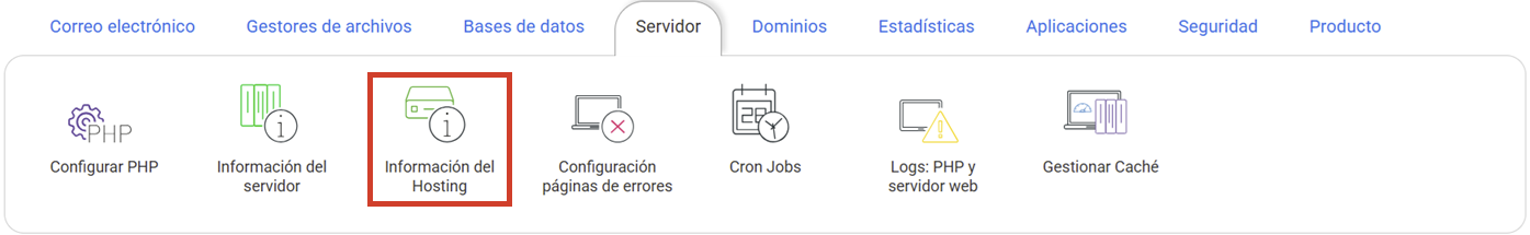 En tu panel de control de cdmon, desde el "Listado básico de servicios" accede al panel de gestión del alojamiento. Una vez dentro del panel de gestión del alojamiento tienes que acceder a la opción Información del alojamiento, que se encuentra dentro de la sección