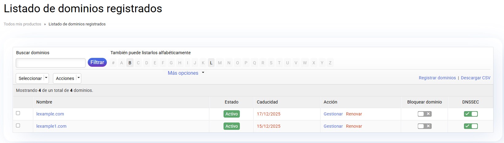 Si el pago se ha hecho correctamente, recibirá un correo de confirmación por parte de cdmon y el dominio ya aparecerá en el listado de dominios de su panel de control: