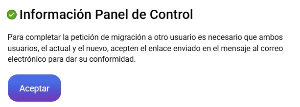 Para finalizar, hace falta que la petición de migración se acepte por las dos partes, el usuario actual y el nuevo usuario. Recibirán un correo en sus respectivas direcciones de contacto.