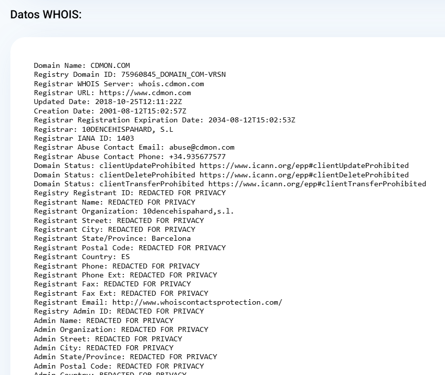 Cómo ver la información pública de un dominio desde cdmon.com (whois)