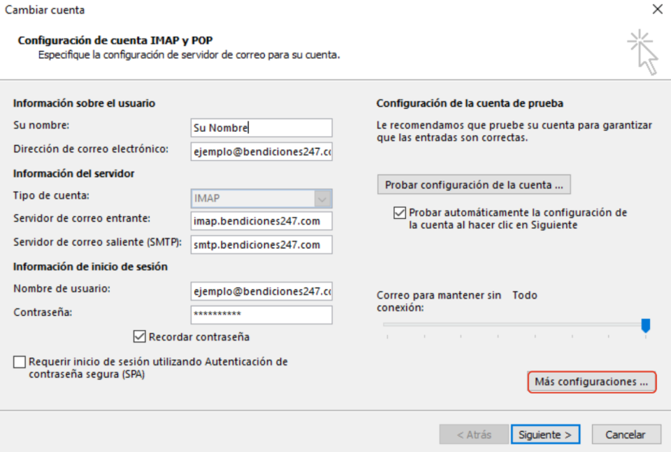 - Puerto SMTP: 587 o 465