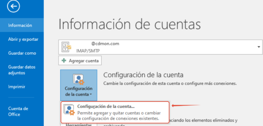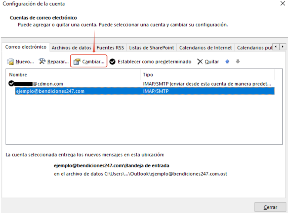 - Selecciona tu cuenta de correo y haz clic en Cambiar