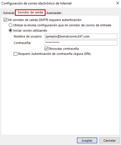 - Activa: "Mi servidor de salida (SMTP) requiere autenticación"