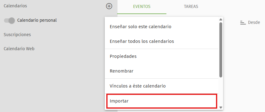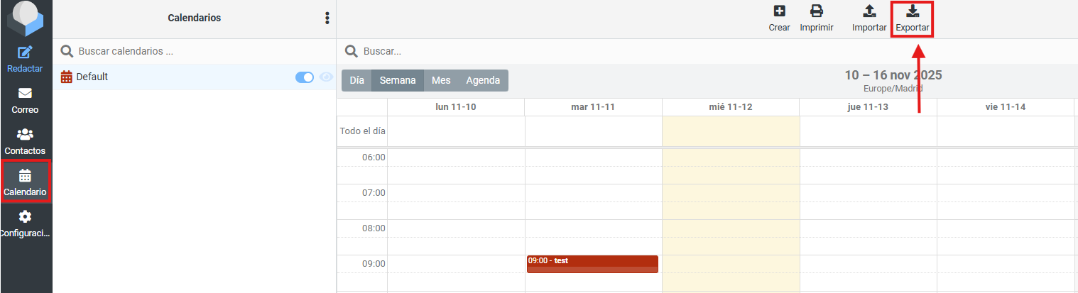 1. Exportar calendario desde Roundcube