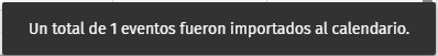- Una vez finalizada la importación, en la esquina inferior derecha se mostrará un mensaje de confirmación indicando cuántos eventos han sido añadidos correctamente. Ya podrá ver todos los eventos y fechas de su calendario listadas.