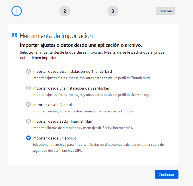 Importación de Thunderbird