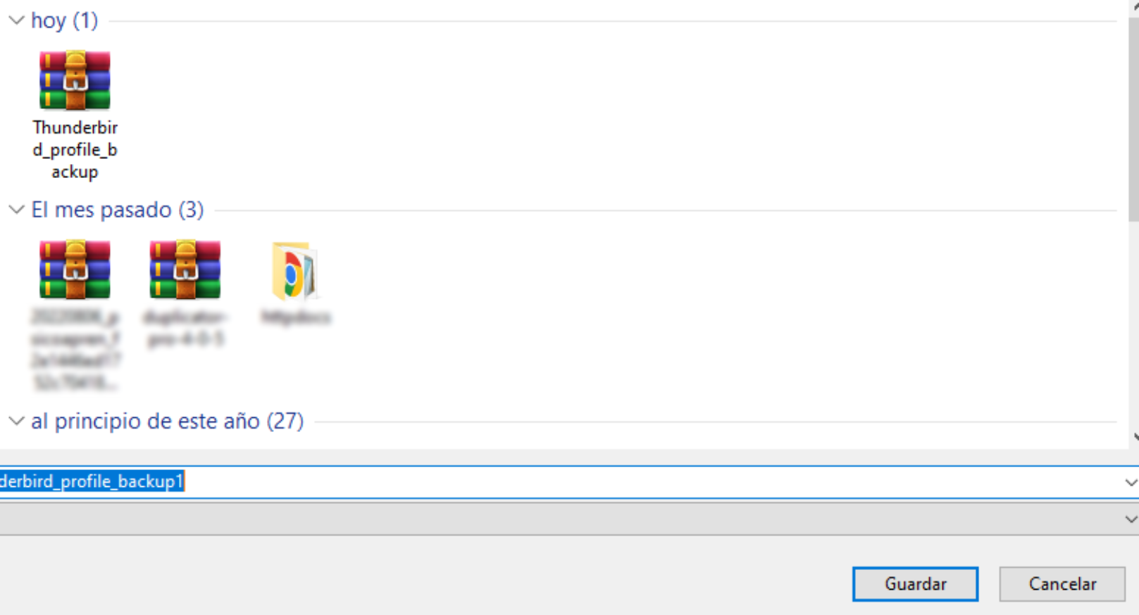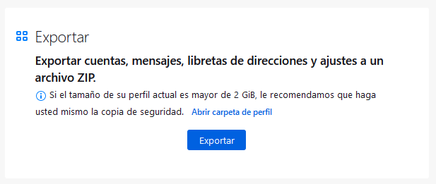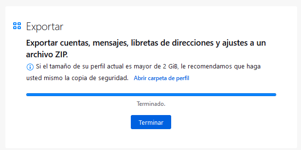 Exportar configuración/mensajes Thunderbird a un archivo comprimido