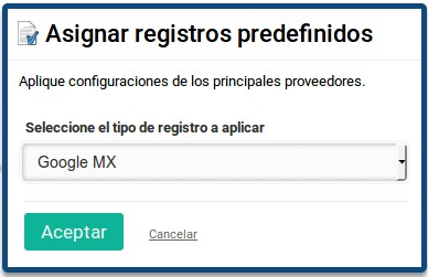 En la opción Registros predefinidos puedes seleccionar que de forma automática se configuren los registros MX de Google G Suite.