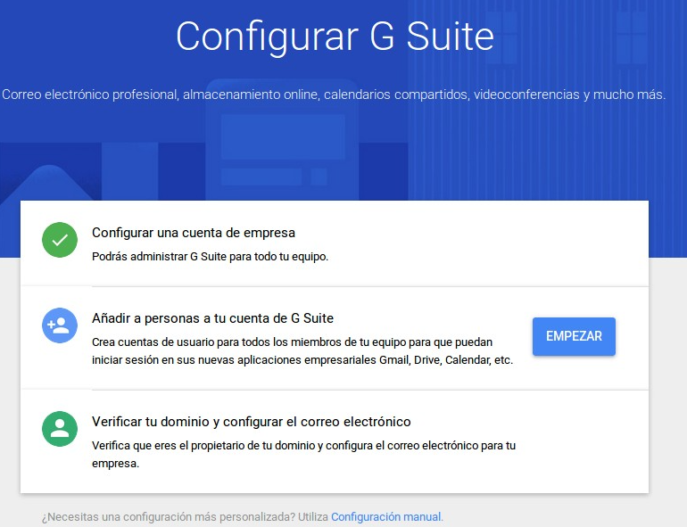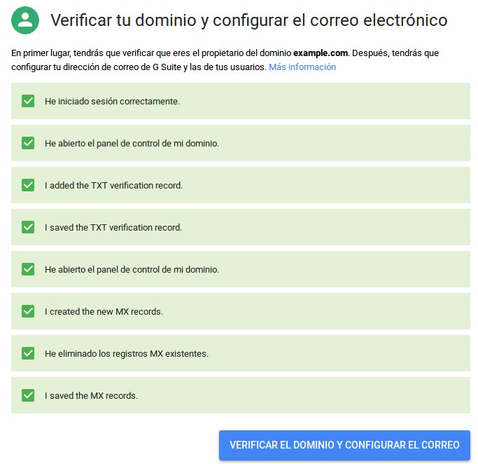 Una vez realizados estos cambios y verificado el dominio, ya puedes disponer del servicio de Google G Suite configurado correctamente en tu dominio.