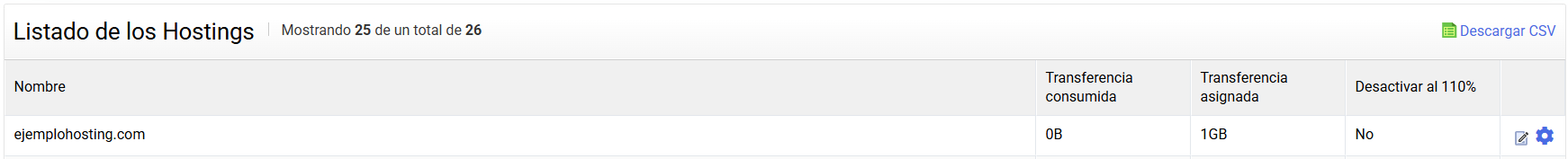 En la información se nos mostrará la "Transferencia consumida", la "Transferencia asignada" y si está habilitada la opción de desactivar el alojamiento al superar el 110% de la transferencia.