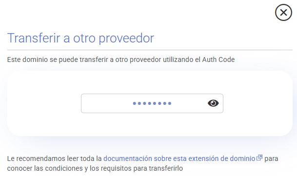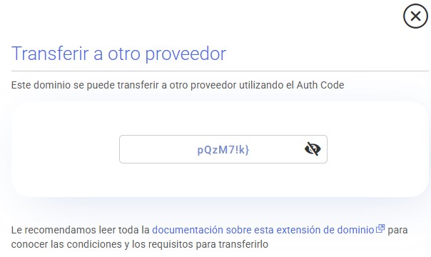 El AUTH CODE es un código necesario para poder realizar la transferencia del dominio.