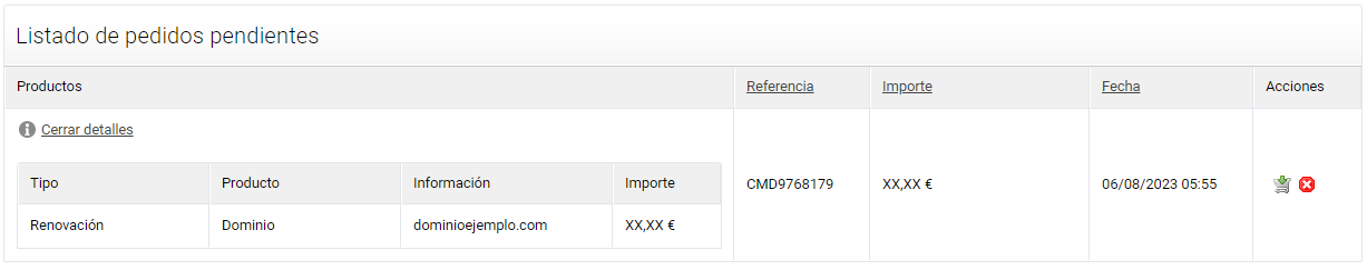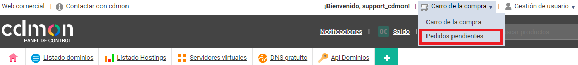 Desde la sección "Pedidos pendientes" de tu panel de control de cdmon puedes gestionar los pedidos que tengas pendientes de procesar.