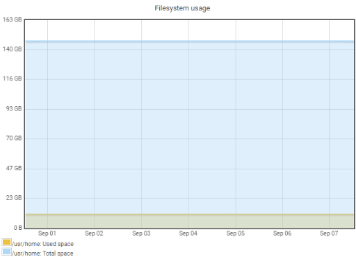 Filesystem usage: % de espacio ocupado en disco de cada partición. Total space es la totalidad del espacio en disco, y used space es el espacio en disco utilizado.