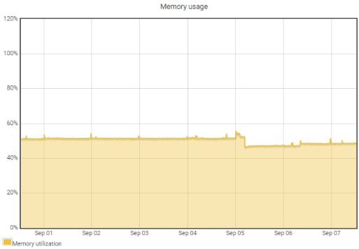 CPU usage: Representa el % de uso de la CPU. El 100% representa la totalidad de cores que tiene el servidor, es decir, su capacidad de uso por CPU completa.