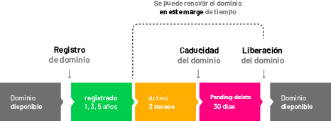 - Dominio eliminado: si no se renueva durante el periodo anterior, el dominio se elimina completamente y vuelve a estar disponible para registro.