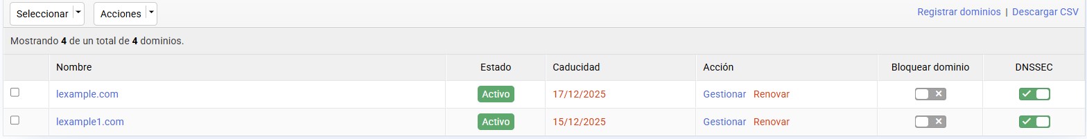 DNSSEC: puedes activar o desactivar el DNSSEC (no disponible para todas las extensiones).