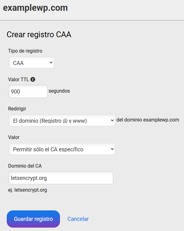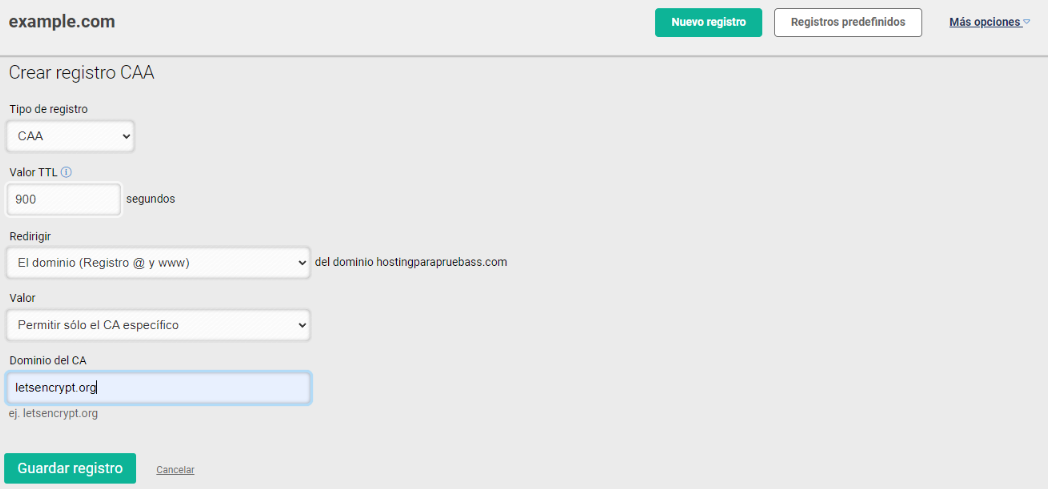Solo las autoridades de certificación (CA) configuradas en el registro pueden emitir certificados para el dominio o subdominio. Es decir, si dispones de un registro CAA, solo las autoridades certificadoras indicadas en el registro pueden emitir certificados para el dominio o subdominio.