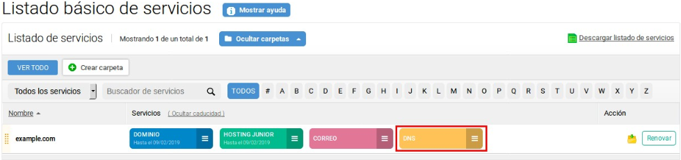 Accede a tu panel de control de cdmon y pulsa en la opción DNS del dominio en el que quieras configurar el registro CAA.