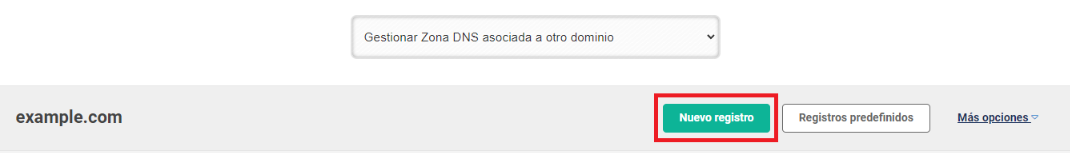 En la pantalla "Registros DNS" pulsa en la opción Nuevo registro.