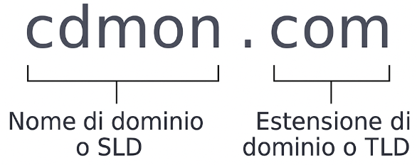 I domini si compongono di un nome e un'estensione. Sono separati da un punto. Così, in cdmon.com, cdmon è il nome e com è l’estensione.
