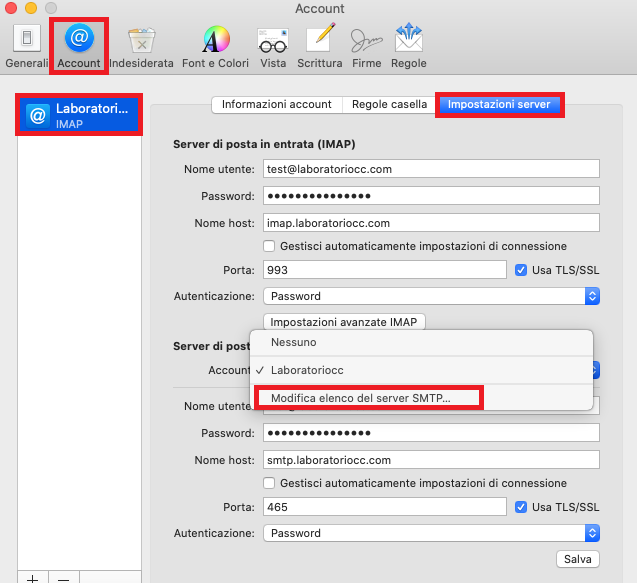 - Se non riesci a inviare email, verifica che non sia configurata la porta 25 e che Mail di Mac salvi correttamente le modifiche.