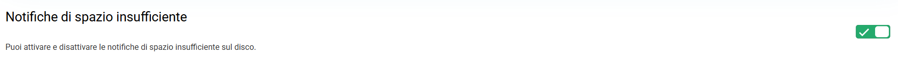 Gli avvisi per mancanza di spazio ti permettono di ricevere notifiche quando l’alloggio sta esaurendo lo spazio disponibile per archiviare ulteriori contenuti.