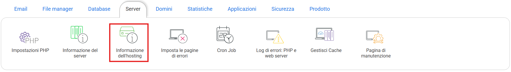 Server', cliccare sull’opzione Informazioni sull’alloggio.
