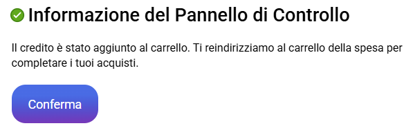 Nel darti "Accetta" ci apparirà un'altra notifica indicando che il saldo è stato aggiunto al carrello, quindi dobbiamo solo andare ad esso e procedere con il pagamento. Basta fare clic su "OK" di nuovo: