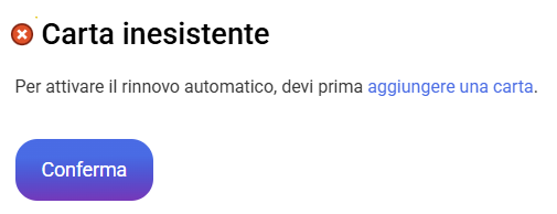 Una volta aggiunta la carta torna al primo passo e attiva il rinnovo automatico utilizzando il metodo di pagamento con carta.