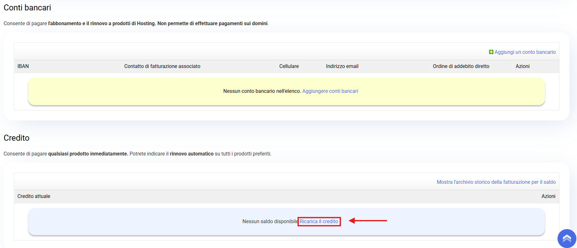 Se non hai attivato il equilibrio equilibrio il sistema ti reindirizzerà alla possibilità di aggiungere saldo al tuo utente. Clicca su aggiungi saldo al tuo account.