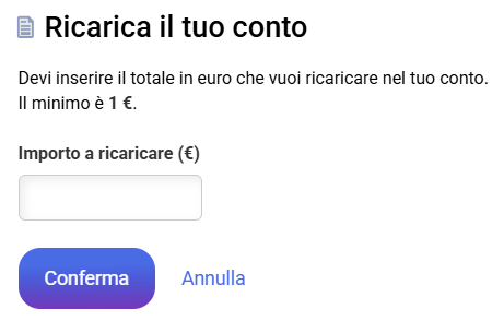 Si aprirà una finestra che richiede la quantità di saldo che vogliamo inserire. È importante che questo importo sia in euro.