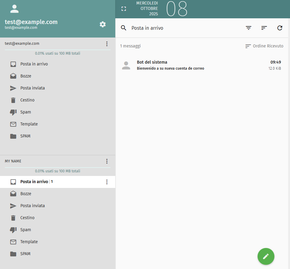 Cliccando sul nuovo account, sarai in grado di accedere alla tua casella di posta e a tutte le cartelle (Invia, bozze, ecc.).