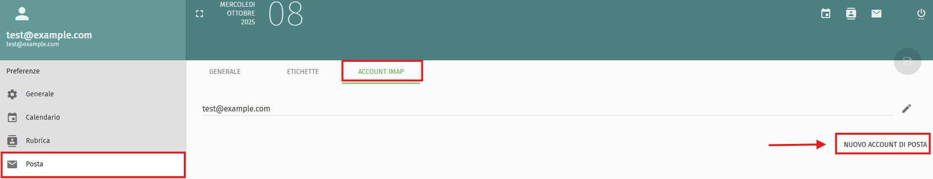 - Fare clic sulla scheda "Account Imap".